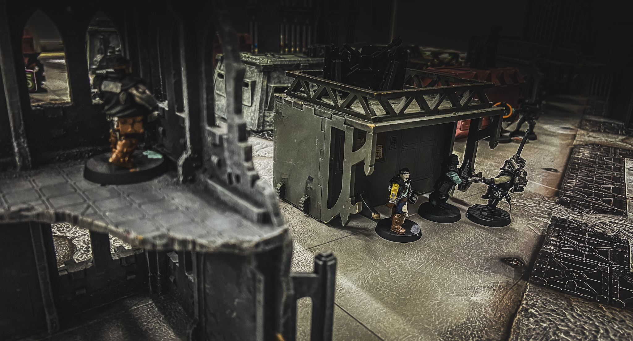 Alarms were raised once again at the Spire Gate as the Sump Saints looked to expand their fanatical power. However The 451 Ore Chasers did not appear to want to let it slip from their control. The evening began quietly as the gangs snuck around the toll road area until an inexperienced Cawdor Juve left himself out in the open. Pilviker didn’t need to be asked twice and the juve was shot down.