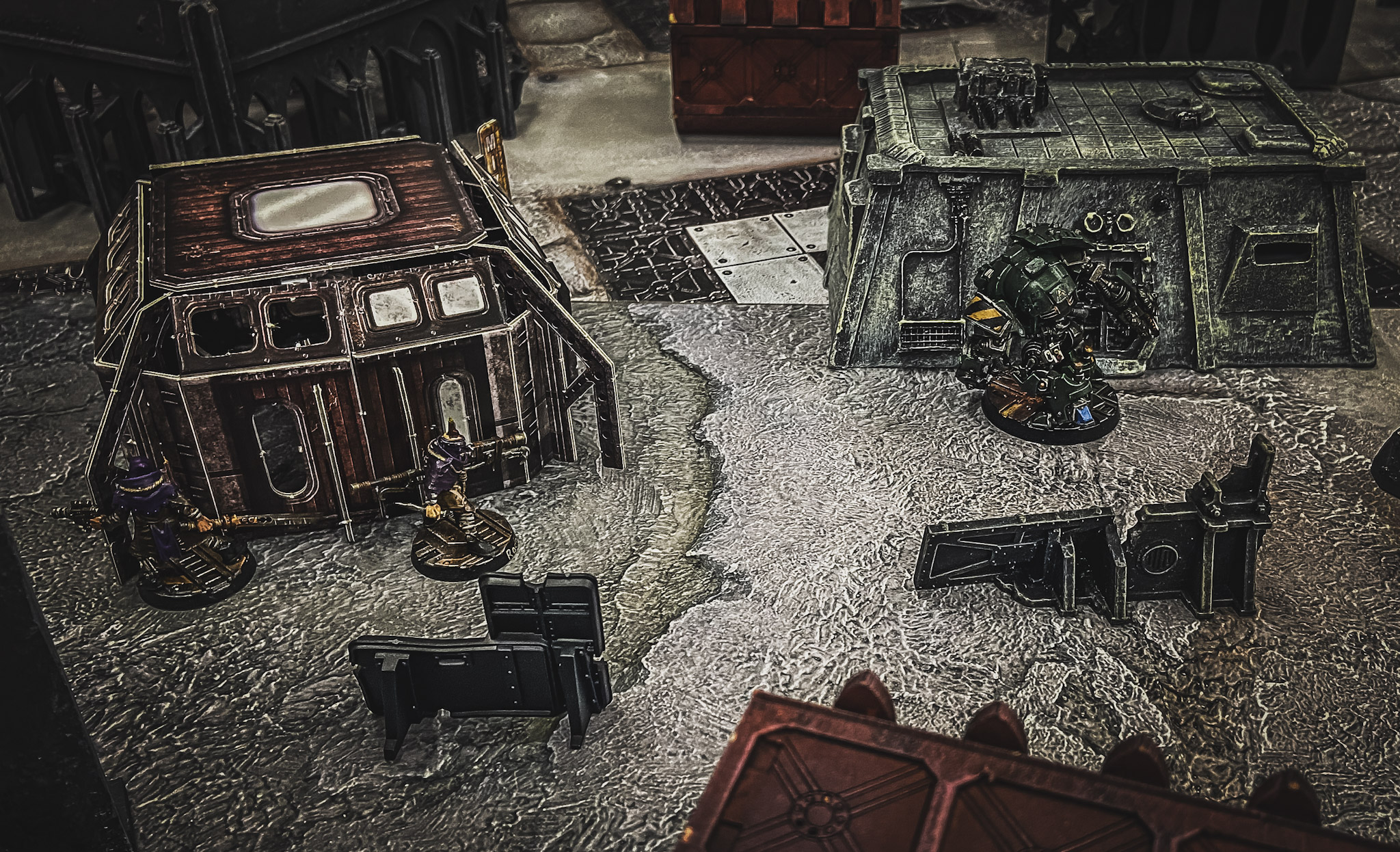 After skulking around in the shadows the rusty old Ambot made itself known and mutilated a fresh Orlock initiate, rumours abound that he didn’t pass his initiation. At this point we are led to understand that Prestwold, leader of the Sump Saints was knocked to the ground and after repeated gunshot he finally succumbed to injury, he may be hurt but we get the feeling he’ll be back.