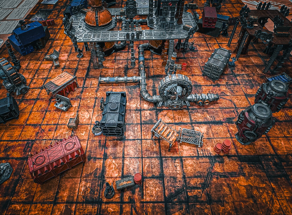 With the Doc pushed back out of range of the board edge. The only chance for the enforcers fell to Patrolman Gibbs to remove the standing Jariya Sensei. He managed to seriously wound Jariya Sensei but as he remained on the battlefield unbroken the Enforcers were unable to claim the victory, the rackets and intrigues despite the huge ‘show of force’. Dia Bo, Zoro, Yarrick, Neil, XXV935 and the man who calls himself the Invisible One all taken out of action. The Enforcers came out relatively unscathed but will have some explaining to do back at the precinct.