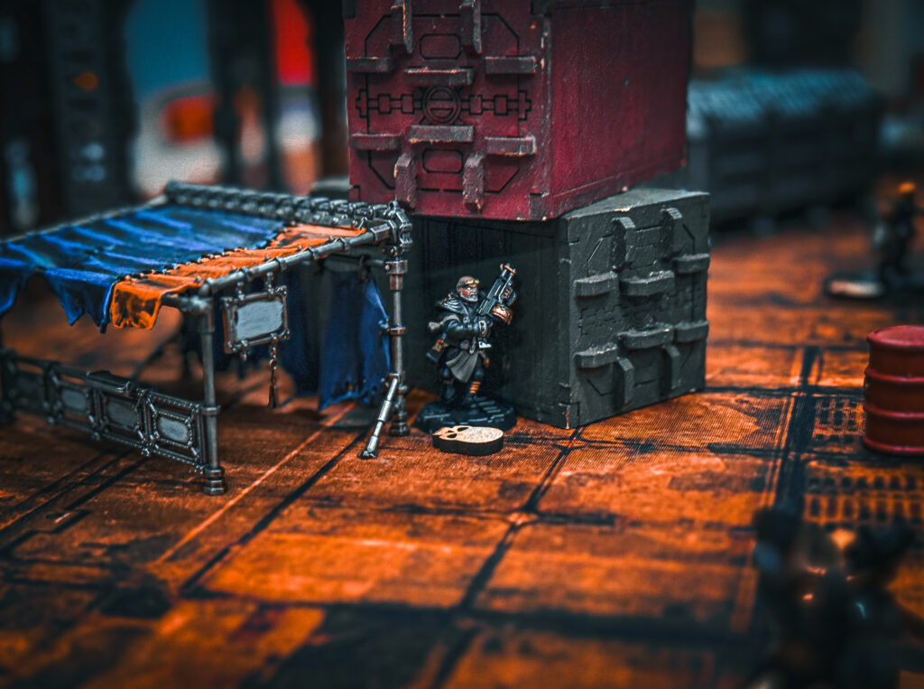 The Captain had amassed the best Drakes Watch had to offer in the hope that the numbers alone would be enough to put off any would-be assailants. That….or the hulking great Am-Bot ED209 he’d manage to poach from a reluctant Noble he had a bit of dirt on.