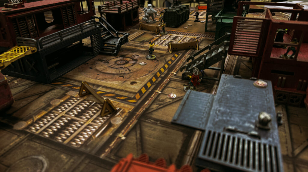 All of a sudden a number of the frenzied citizens around the caravan cast their disguises aside and started to loot the vehicles, Zhora having scrambled her way back into the fight in the nick of time, lining up the looters she unleased the xenos energies of the neural flayer on them, and watched as the look of inner madness took hold of their faces. Plasma fire again poured into the centre of the skirmish around the caravan before Pellig leapt from concealment in a nearby building and running Davina though with his Blessed blade. Before he had a chance to reposition though the stinging whip of the Lost Girls leader tore across the side of face and his severed ear fell to the floor, rushing to the attack the Nacht Ghuls blades failed to land true, as if the Escher Matron was protected by some arcane force. With a wicked grin the veteran Escher lashed at Pellig again and the Nacht ghul slumped unconscious and bleeding at her feet.